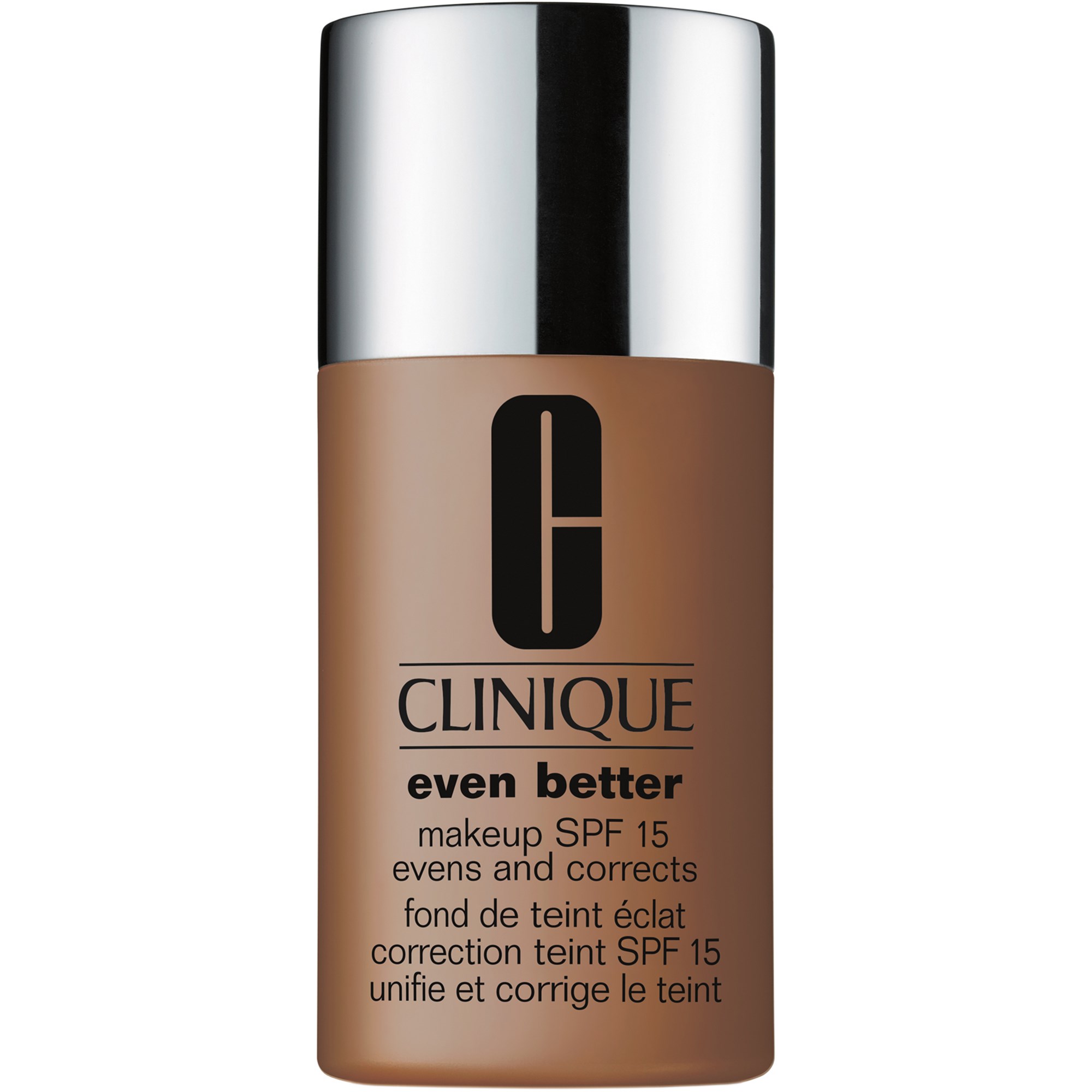 Flytande foundation med vårdande fördelar som ger en naturlig finish samtidigt som den synligt minskar pigmentförändringar och ger en jämnare hudton. Perfekt till alla hudtoner. Resultat på endast 4-6 veckor. Du uppnår ett ännu bättre resultat – som även syns när du inte har den på – om du använder den tillsammans med Even Better Clinical Dark Spot Corrector och Even Better Skin Tone Correcting Moisturizer SPF 20.Användning:Appliceras efter användning av 3-Stegs Systemet och dagcreme så uppnår du bästa resultat. Appliceras med foundationborste eller med fingertopparna. Börja mitt i ansiktet och tona färgen utåt. Tas bort med din favorit bland Cliniques makeupborttagningsprodukter.30 ml