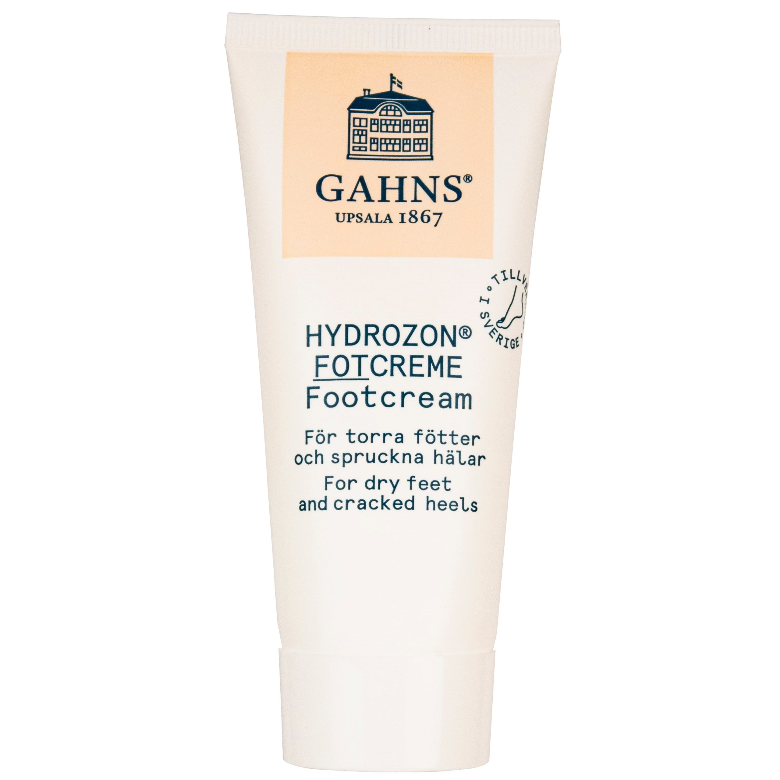 Gahns Hydrozon FotcremeFör torra fötter och spruckna hälar. Mjukgörande oljor och fuktgivande ingredienser mjukar upp huden på fot och häl. Bisabolol förebygger sprickor. Mentol och kamfer ger kylande effekt. Fri från parfym och färgämnen. 60ml